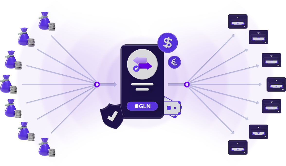 GLN의 경쟁력있는 환율, 저렴한 네트워크 수수료를 적용하여 전세계로 송금할 수 있습니다.